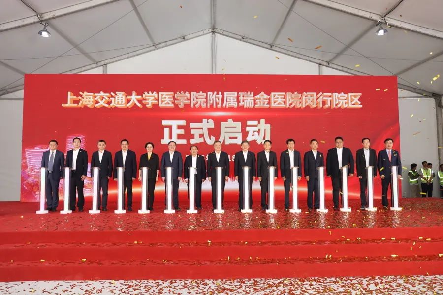 杨振斌、丁奎岭、林忠钦、陆方舟、吴强、钱旭红、江帆、沈雯、可晓林、李阳、赵昕、宁光、胡伟国、吴宏、夏光共同为瑞金医院闵行院区按下启动键。